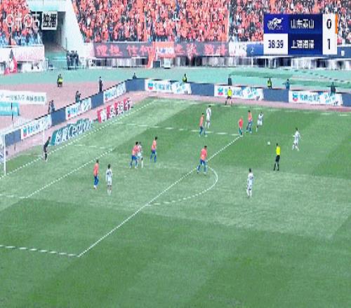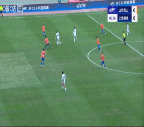 第8分钟,海港打出反击,刘若钒右路送出一记精准斜传,李新翔包抄破门,上海海港1-0山东泰山。