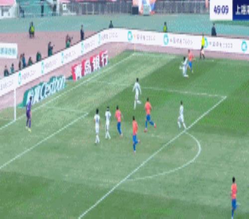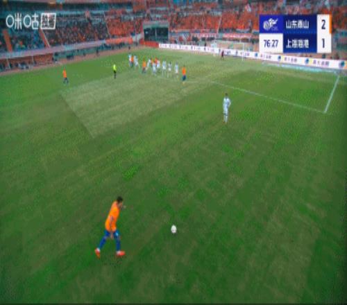 第77分钟,克雷桑任意球开出,卡扎伊什维利胸部停球凌空扫射破门,本场完成梅开二度。泰山3-1海港。
