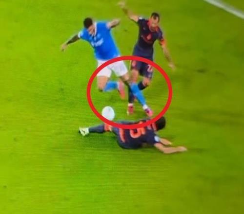 姆希塔良在禁区内与那不勒斯球员迪洛伦佐发生接触,主裁判在助理裁判的提示下判罚点球。然而,从回放画面清晰可见,姆希塔良并无主动朝迪洛伦佐方向移动的动作,接触更多是由迪洛伦佐主动制造。这一判罚引发了意大利足球界的广泛质疑。意大利转播方邀请的前裁判嘉宾马雷利在仔细回看整个过程后明确表示:"我重申,那不是那不勒斯的点球。这个判罚本应由VAR撤销。接触完全是迪洛伦佐主动制造的。姆希塔良没有任何朝迪洛伦佐方向的动作。"