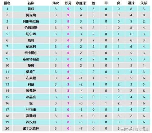 10月,只有曼联、阿森纳和阿斯顿维拉取得三连胜,净胜球给人印象往往是负数的曼联,却凭借净胜球的优势,排在单月的英超第一名。卫冕冠军利物浦,跟富勒姆、西汉姆和诺丁汉森林一起,是4支三场全败的球队,利物浦排名直线下滑,西汉姆和诺丁汉森林换帅后,仍未取得联赛首胜。