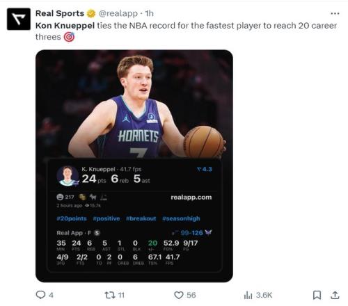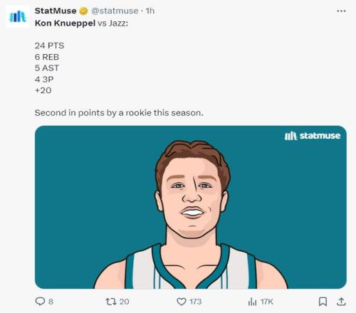 这场比赛克努佩尔也完成了一些纪录:1.他拿到了本届新秀截至目前的第二高分24分;