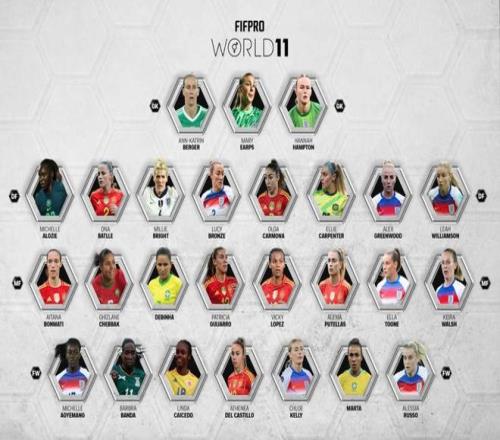后卫:布龙泽(英格兰)、布赖特(英格兰)、莉娅-威廉森(英格兰)、巴特利(西班牙)